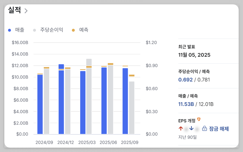 아래 차트는 https://kr.investing.com/ 에 있는 자료로 배당이나 실적등 내가 보고 싶은 자료들이 많이 있다.