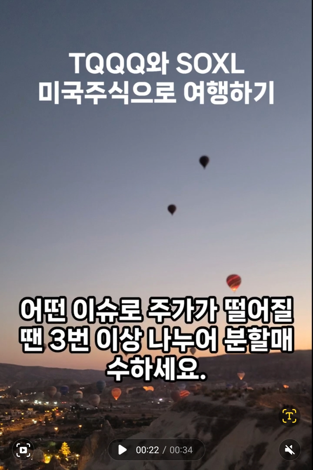 2025년 3월 관세 이슈로 주가가 고점에서 30% 빠진 적이 있었다. 나는 장기투자를 지향하고 있고 실제로도 장기투자자지만, 이럴 때는 여행 경비라도 벌어보자는 원칙을 세웠다. 그리고 실제로 실행했고, 작년에 이스탄불을 다녀왔다. 올해는 작년보다 주가가 덜 빠져서 여행 경비는 무리고, 운동 비용 정도는 벌어보자 하고 시작했다. 그런데 이란 전쟁 이슈로 주가가 떨어졌고, 나는 분할매수를 계획했다. 아래 이미지는 쇼츠영상을 만들어서 공유한 것이다.