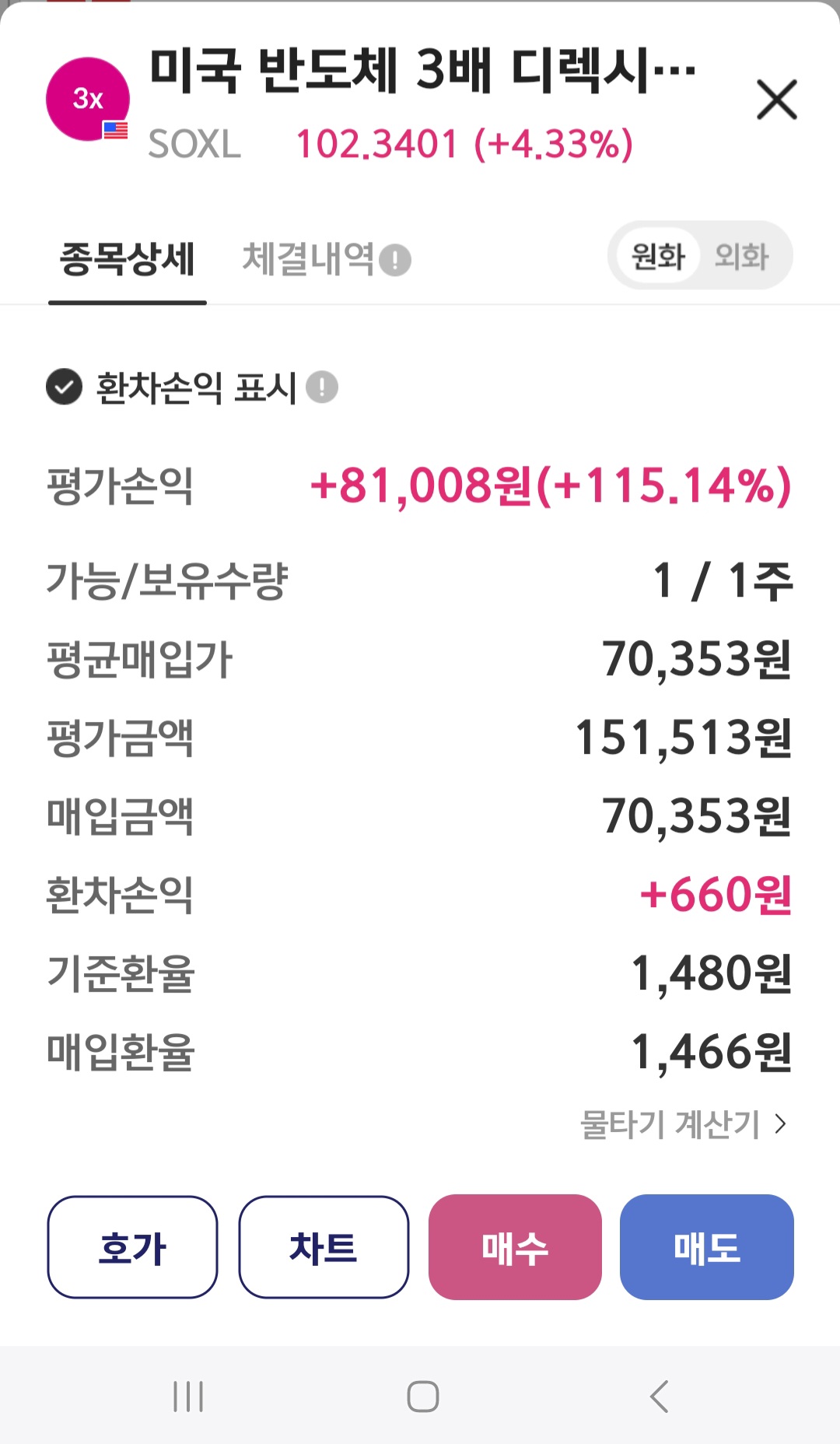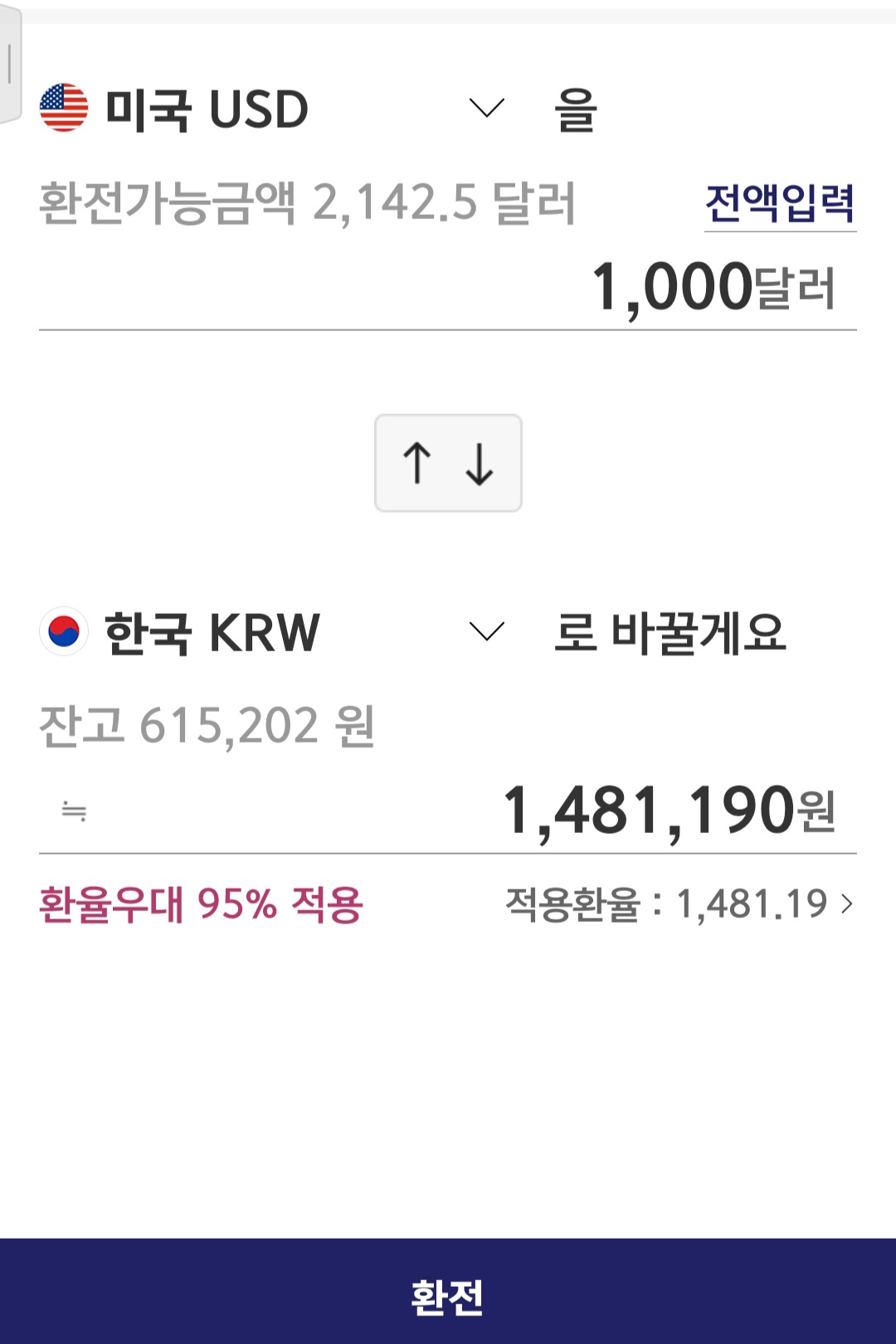 1주는 남겨뒀다. 1년에 한 번 정도는 큰 하락이 온다고 생각한다. 그 때를 대비해 1주는 항상 들고 있어야 한다. 또 하락장이 오면 그때 다시 분할매수를 시작할 생각이다. 그리고 이익금은 바로 환전해서 사용했다.
