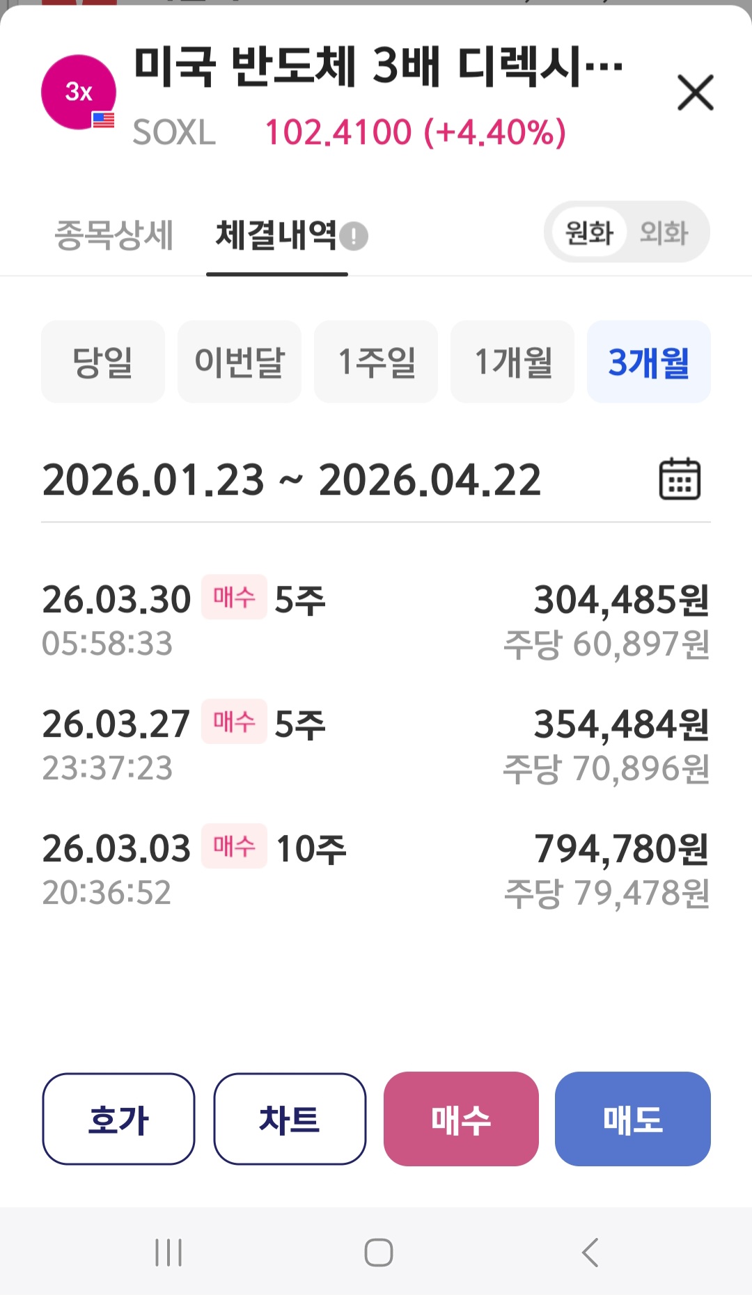 3월 30일 5주 @ 60,897원 ← 이날이 최저점이었다