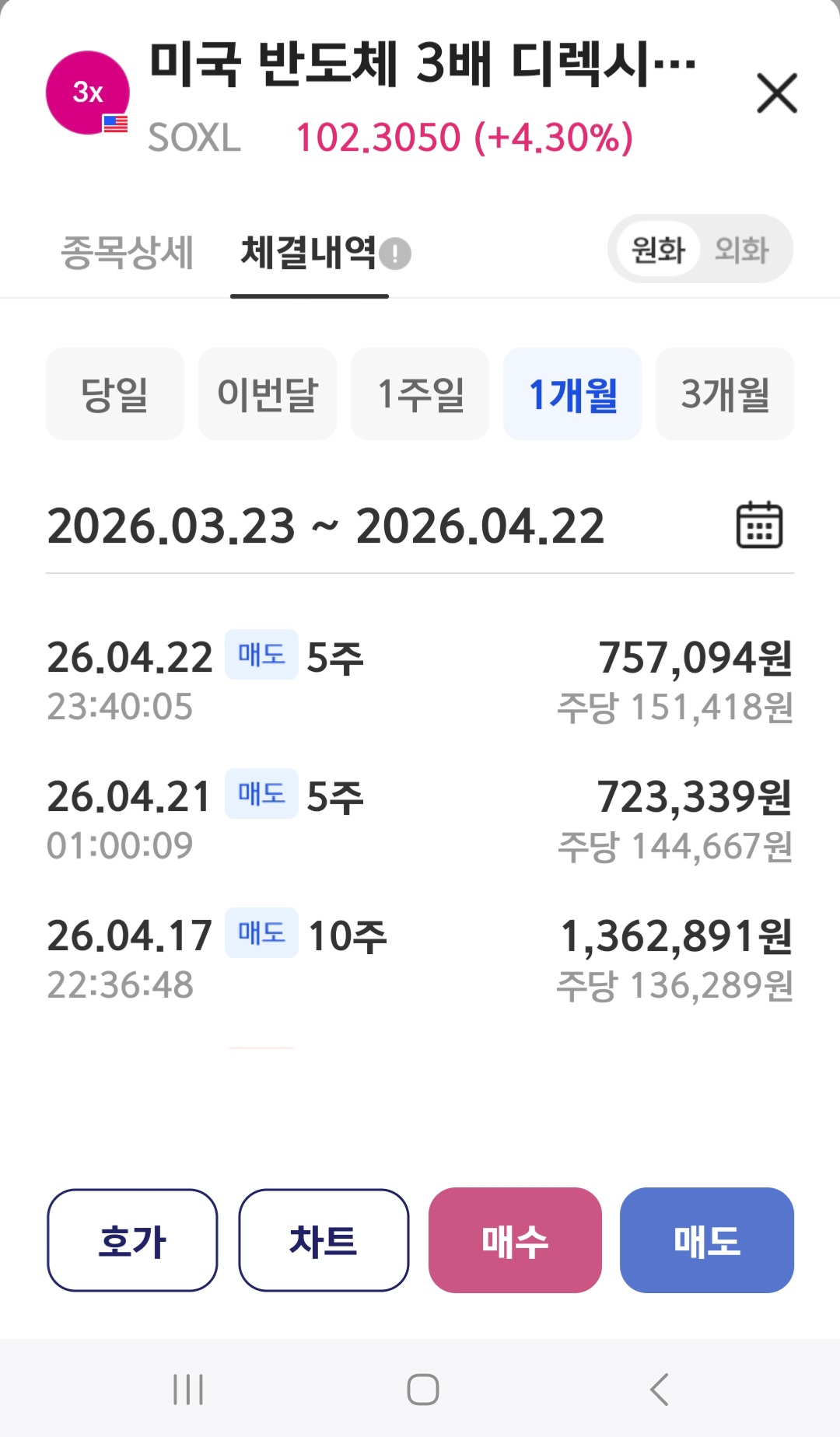 4월 22일 5주 @ 151,418원 (수익률 114.35%)