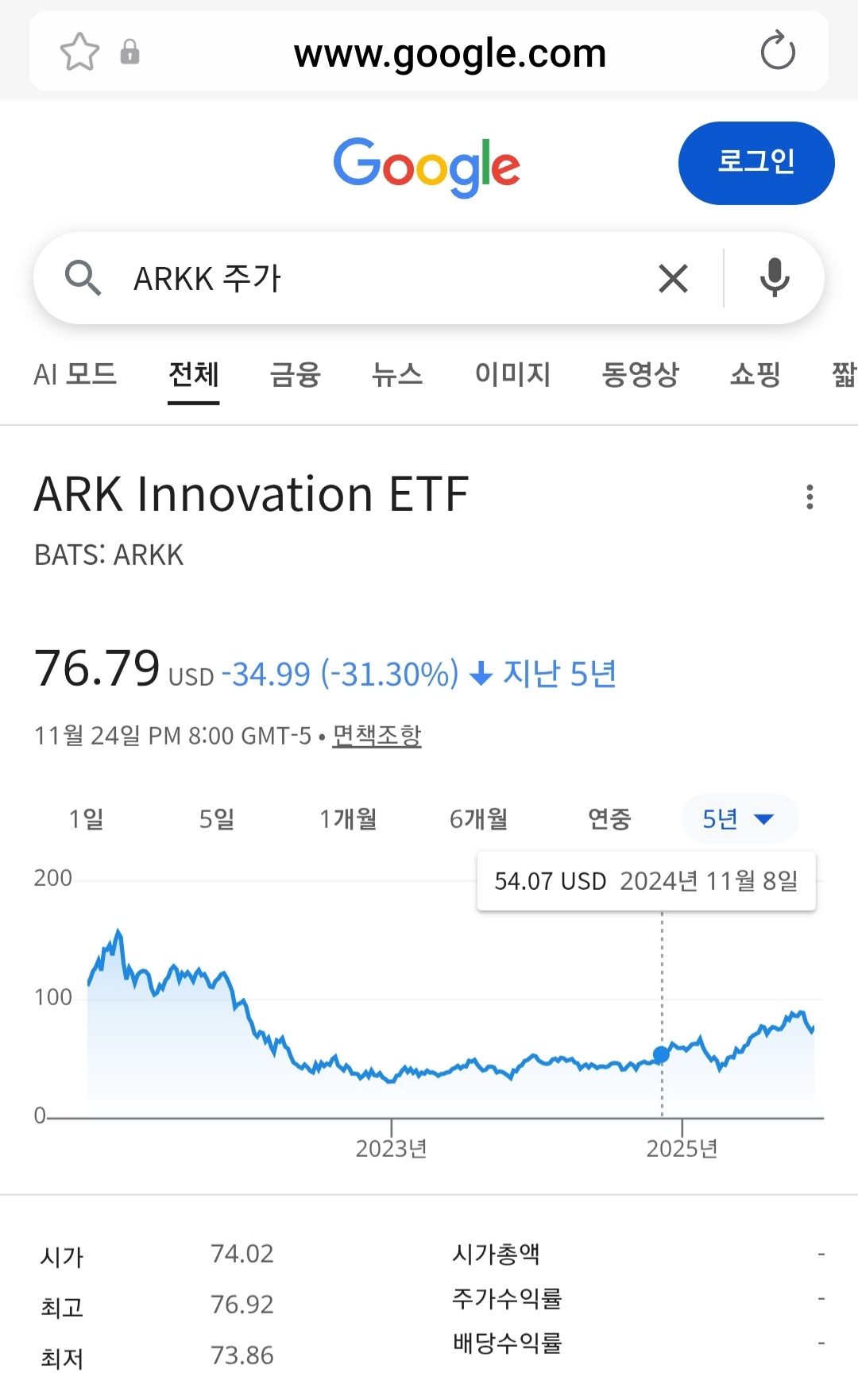 액티브 ETF 중에서 ARKK, 타이거 차이나전기차를 의미 있는 금액을 매입했다. 그때 당시 미디어에서 추천도 많이 하고, 주가도 많이 오르고 있었다.